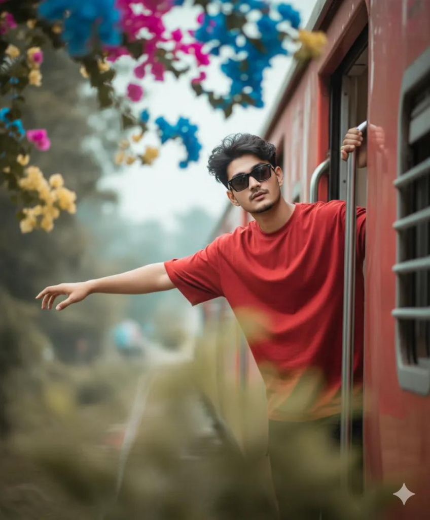 Vintage Car Pro Create a hyper-realistic portrait of a man (man of the uploaded photo) sitting in the driver’s seat of a car, wearing a black shirt, combined with a faded light gray jacket and light gray wide-leg pants. White shoes should be visible, complementing the casual look. Round sunglasses with dark lenses should be…